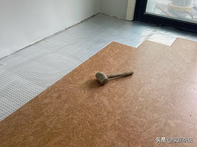 贴完的软木地板,要使用滚轮压实,确保没有空鼓情况。而且,对于边缘部位,要使用重物压24小时。