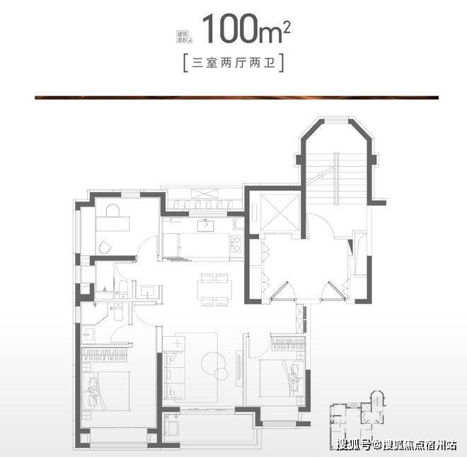 建面约100㎡户型设计得恰到好处!整个户型格局方正,也是当下颇受欢迎的飞机户型。三开间朝南+餐客厨阳台一体化+双卫设计,同时无过道浪费,加上高标准的精装交付标准,真正的完成交付后拎包入住。